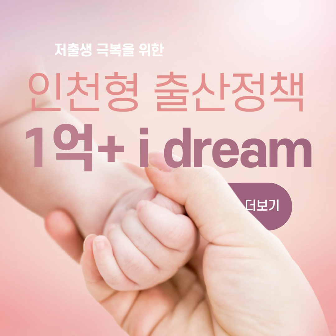 심각한 저출생 문제를 극복하기 위해서 전국 지자체에서 각종 출산장려금과 지원금을 제공하고 있습니다. 올해부터 인천시에서 인천형 출생정책인 1억 플러스 아이드림 정책을 시행합니다. 영유아기에 제한된 출산 관련 정책을 청소년기까지 확대하는 인천시의 출생 정책에 대해서 확인하시기 바랍니다.