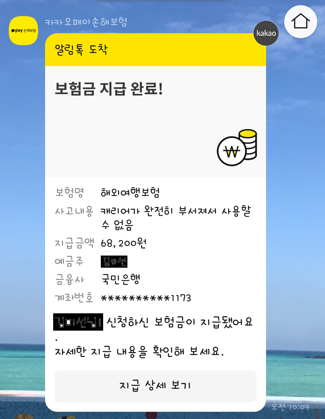 카카오페이손해보험 여행자보험 캐리어 파손으로 보상받은 후기