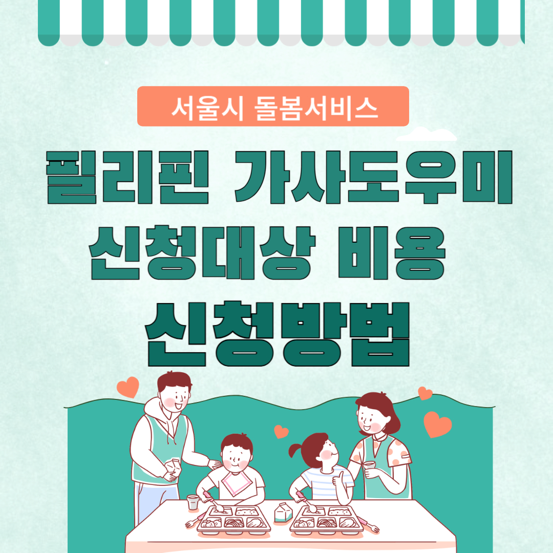 서울시에서 돌봄 인력을 확보하기 위해 필리핀 가사도우미 시범사업을 시행합니다. 이 서비스를 이용하기 위한 신청대상, 이용기간, 비용, 신청방법까지 알아보고 아이 돌봄에 활용해 보세요.