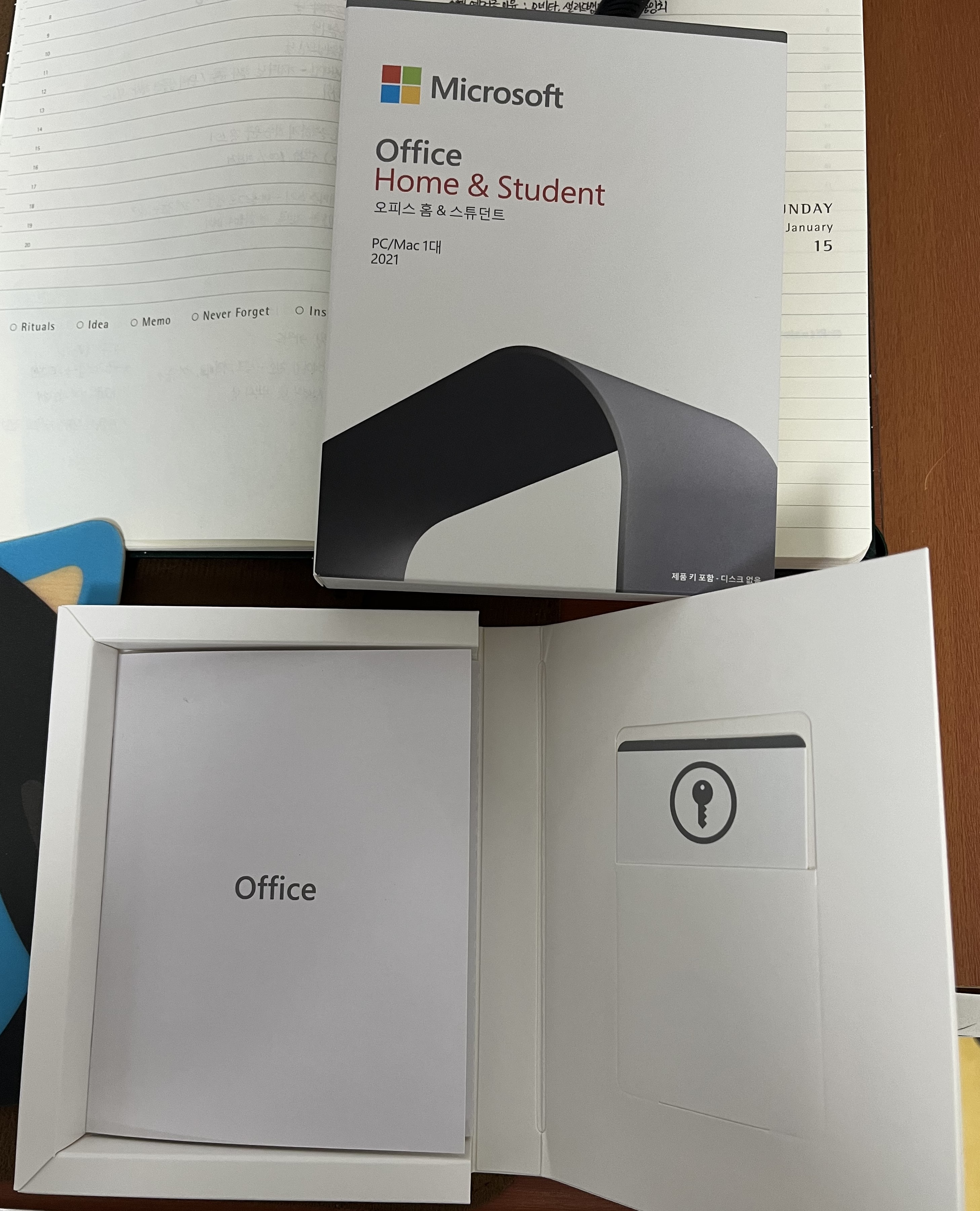 구매하면 위와 같이 CD 케이스 같은 것만 하나 오는데 제품키가 들어 있습니다. 이 제품키를 MS에 로그인 해서 등록하면 사용할 수가 있습니다.